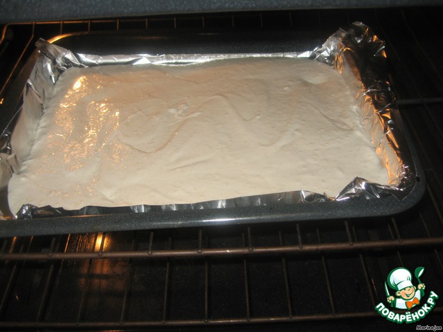 Выливаем часть теста на противень и - в разогретую духовку на 35 мин.