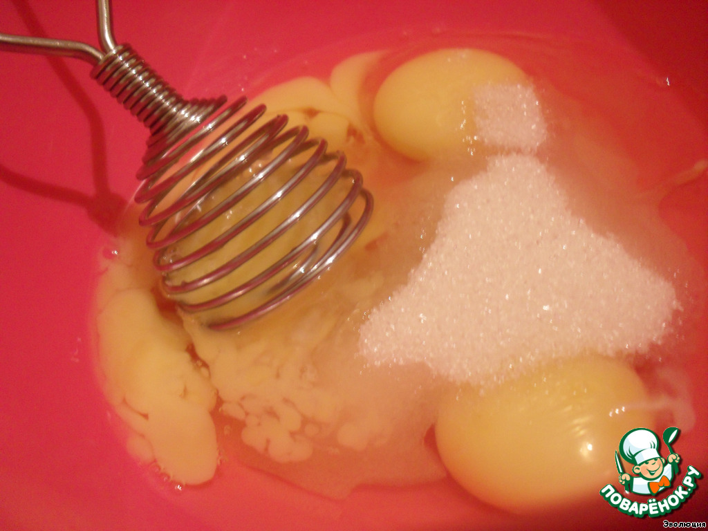 Начинаем. Яйца хорошо взбиваем с сахаром.