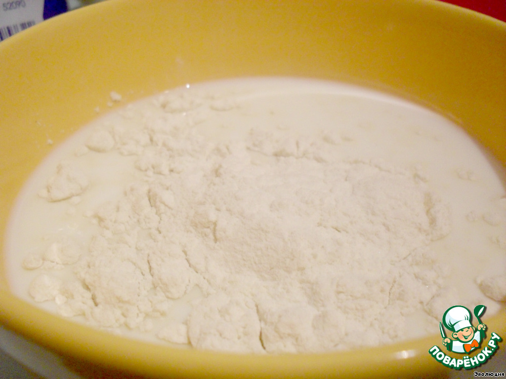 Смешиваем молоко, сахар и муку. Доводим смесь до кипения и варим до загустения.
