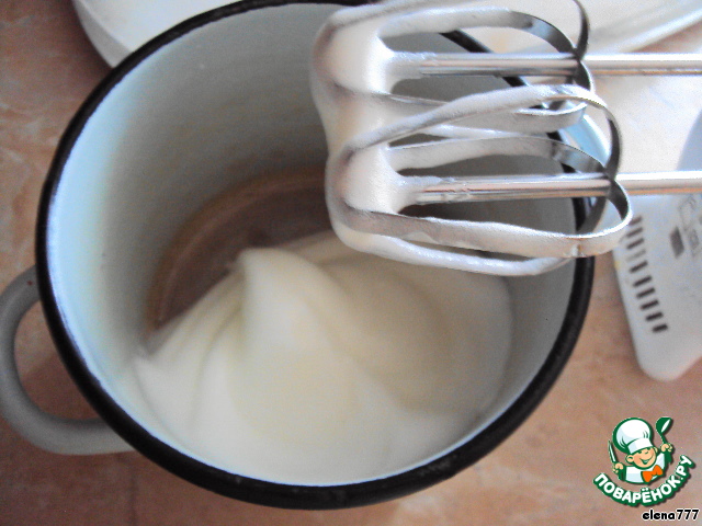 Белки взбить в густую пену, всыпать ванильный сахар и снова взбить.