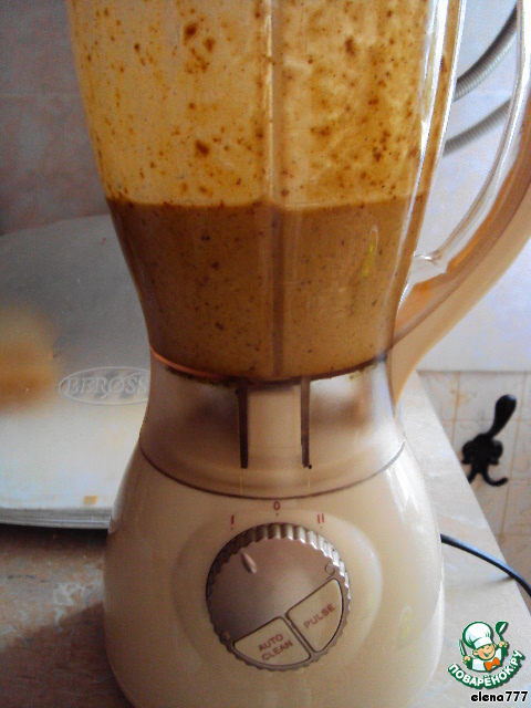 Приготовленную массу выложить в блендер, добавить размельчённые финики и орехи, муку и разрыхлитель, хорошо взбить.