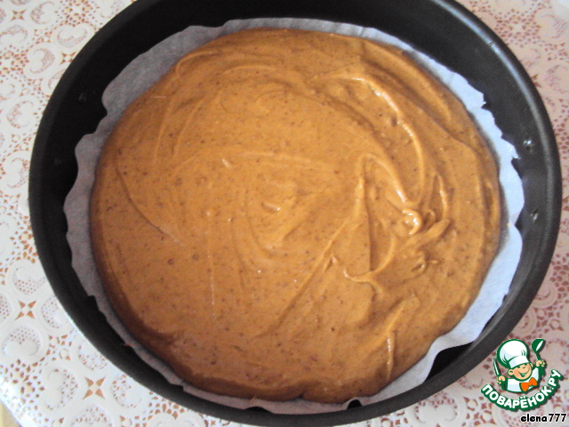 Выложить тесто в форму, застеленную бумагой для выпечки. Я выложила тесто в круглую форму(моя прямоугольная форма слишком большого размера), но лучше запекать в квадратной формочке, чтобы потом было удобнее разрезать на маленькие птифурчики.