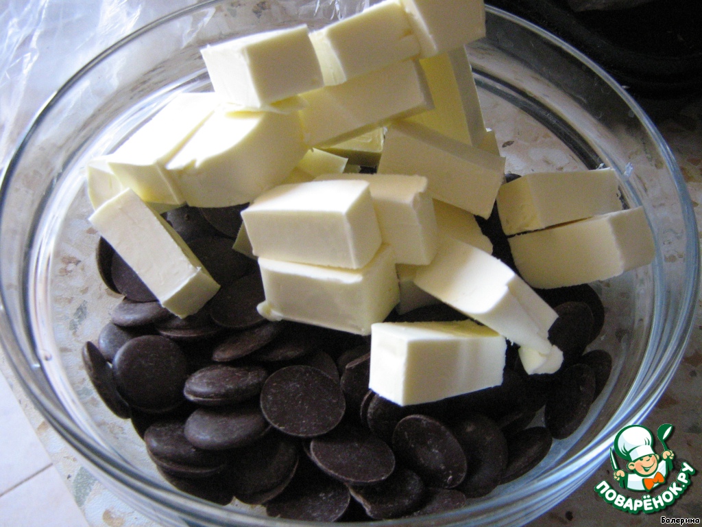 Итак, для начала займемся шоколадом. На водяной бане или, как я, в микроволновке, растопить его с маслом. Обычно я беру вот такие шоколадные монетки, это самый люкс для плавки, очень быстро... и шоколад очень хорошего качества.