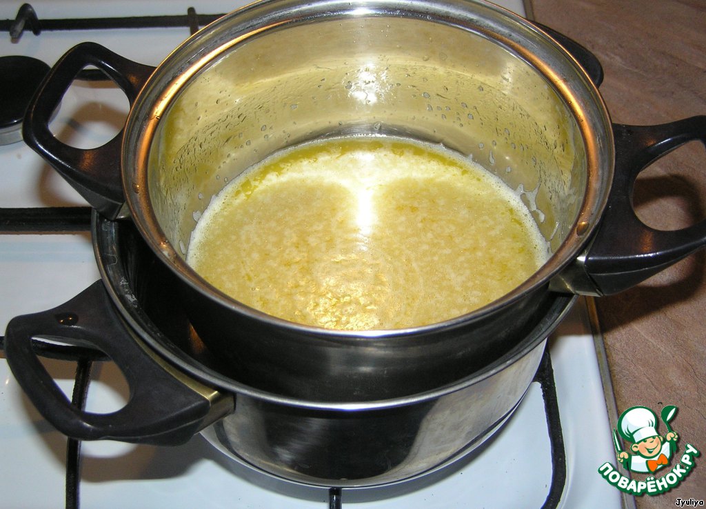 Поставить на «баню». Нагреть, не доводя до кипения.