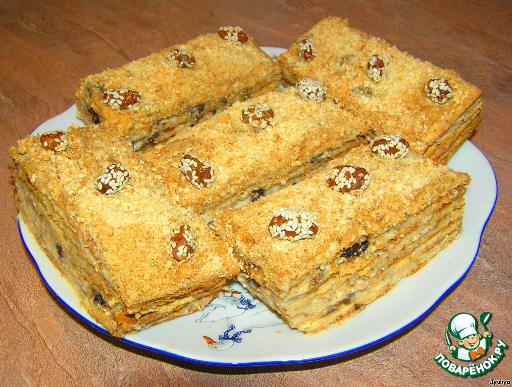 Кремом хорошо смазать коржи, верхний корж тоже смазать кремом и посыпать крошкой печенья. Поставить в холодильник на 3-4 часа.