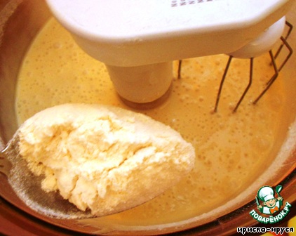 Постепенно, по 1 ложечке, добавляем муку, и каждый раз тщательно взбиваем. Затем добавим соду и ванилин и опять же тщательно все перемешаем. Ура! Тесто готово!