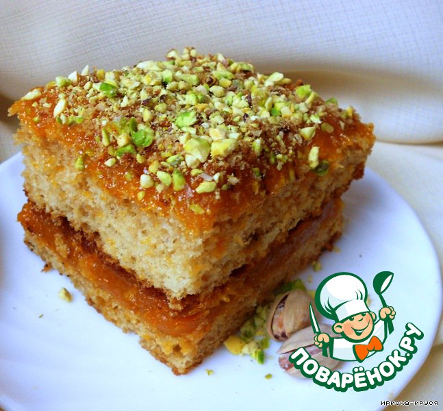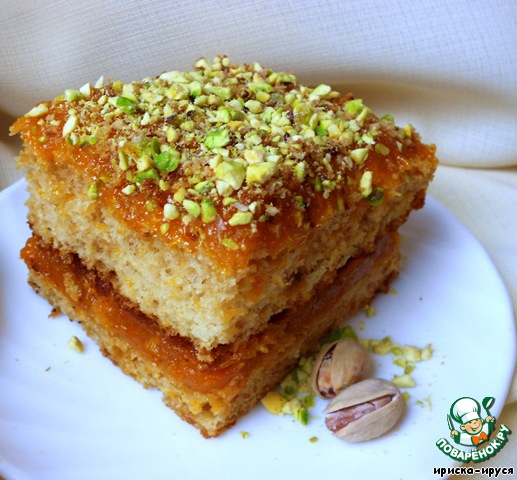 Бисквитное пирожное с абрикосовым повидлом и фисташками
