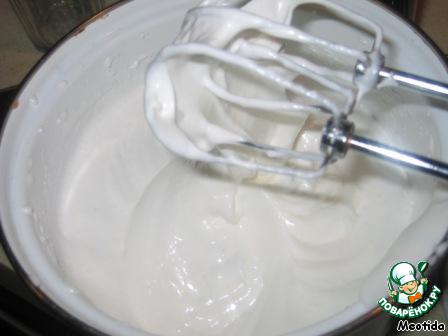 взбиваем яичный белок с ванилином, постепенно добавляем сахар и взбиваем до крепких пиков