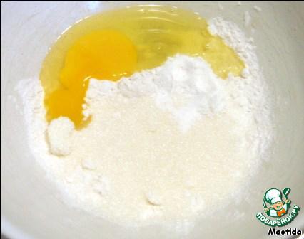 венчиком взбиваем до однородности яйцо с крахмалом и сахаром