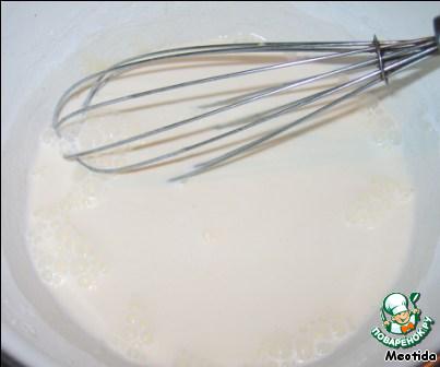 Постепенно вливаем тонкой струйкой сливки, хорошенько перемешиваем, чтобы не было комочков, добавляем кусочки шоколада (100грамм)