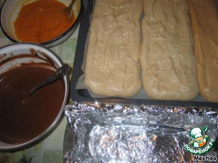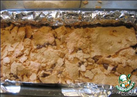 аккуратно накрываем кофейным безе, сверху слой фольги и - на ночь в холодильник.