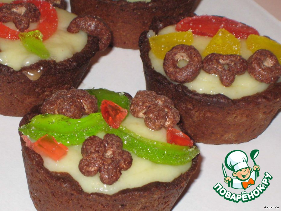 Тарталетки шоколадные с мармеладно-рисовым кремом