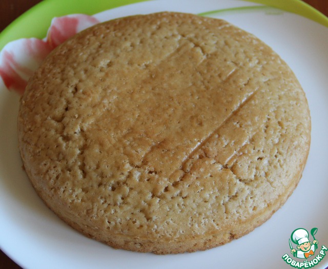 Если бисквит получился высокий, то можно разрезать его вдоль пополам.
