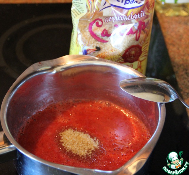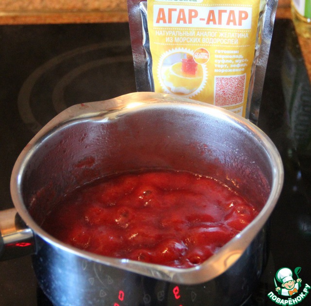 Когда вода закипит и сахар в ней растворится, пробить все блендером. Добавить 1 ч. л. агар-агара и варить на среднем огне 1-2 минуты.