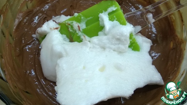 Добавить белки к шоколадной массе. Осторожно перемешайте лопаточкой.