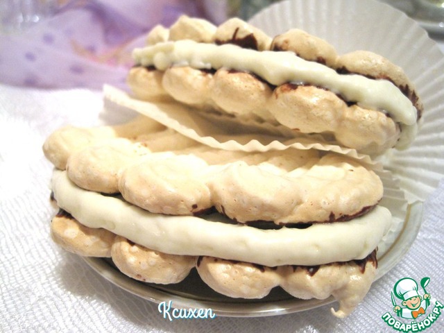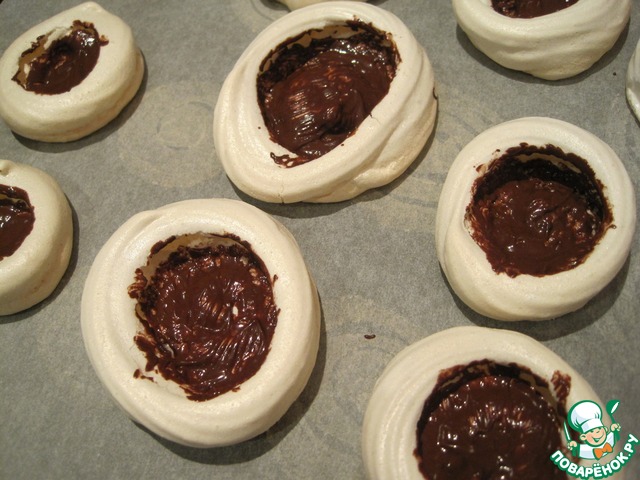 Перекладываем меренговую массу в кондитерский мешок и выдавливаем на противень в форме овалов...
