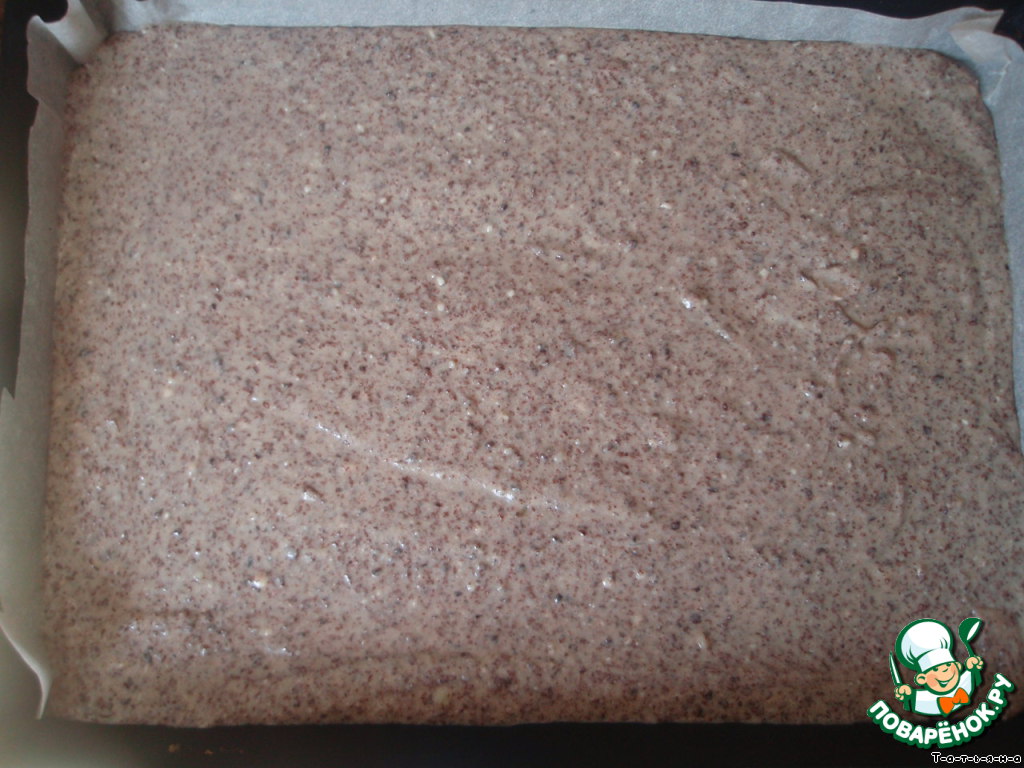 На противень, застеленный пергаментом, выложить тесто, разровнять и выпекать при температуре 175 С около 25-30 минут