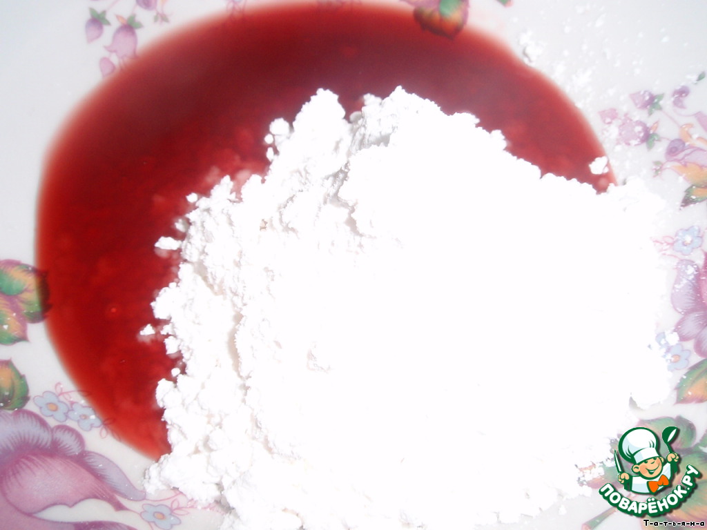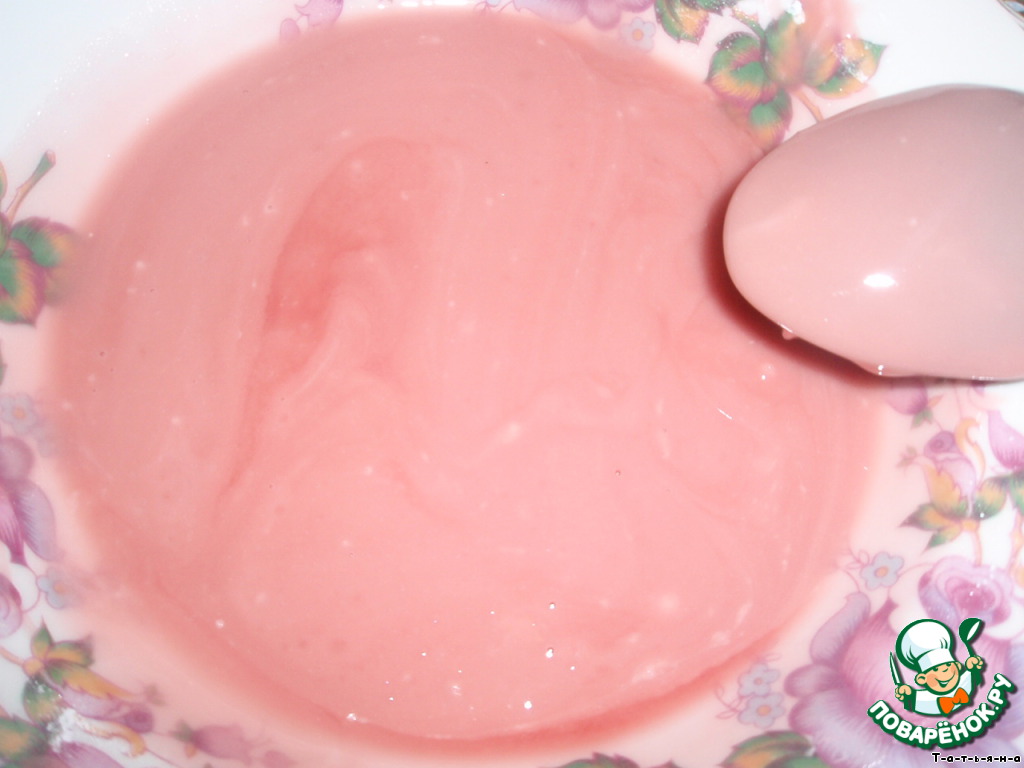 Приготовить глазурь: смешать сахарную пудру с 4 ст.л. вина. Я делала наполовину меньше: 250 г сахарной пудры и 2 ст.л. вина