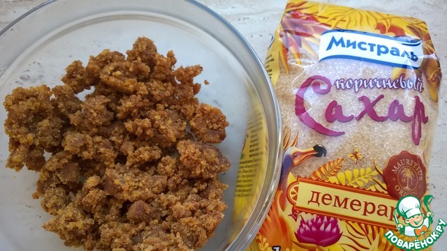 Печенье прокрутить на мясорубке. Добавить сливочное растопленное масло и сахар. Перемешать. Поставить на 10 минут в холодильник.