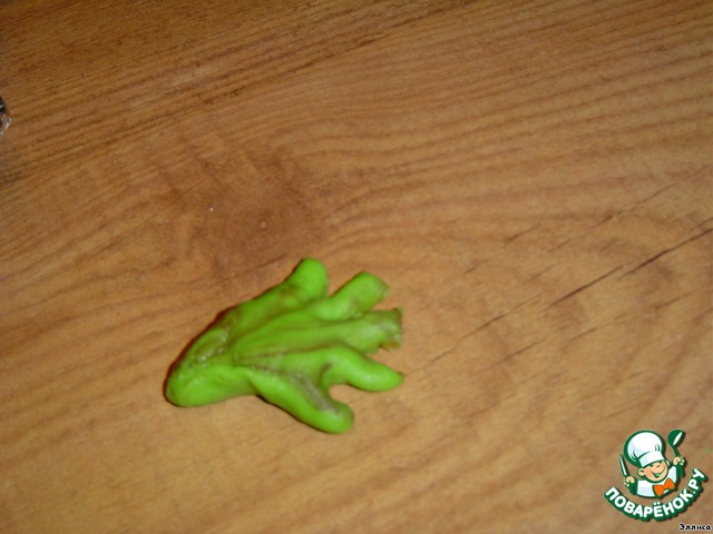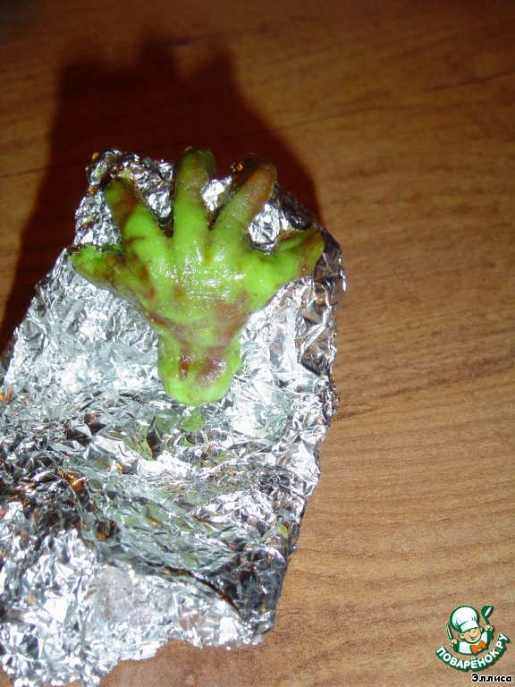 Из мастики (http://www.povarenok.ru/recipes/show/4421/) лепим "руки монстров". Это надо сделать заранее.