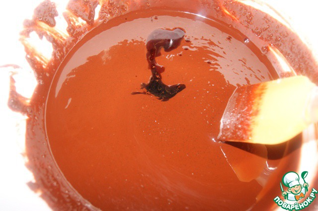 Кофе растворить в кипятке и добавить к растопленному шоколаду, затем влить коньяк.