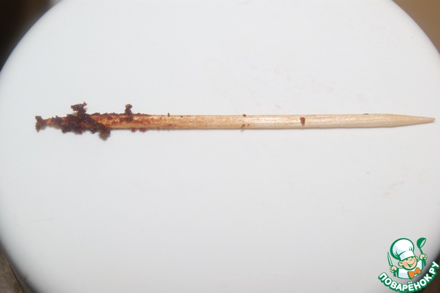 Очень важно не перепечь брауниз, поэтому обязательно проверьте его лучинкой или деревянной шпажкой - она должна быть на выходе влажной и к ней прилипают крошки теста.