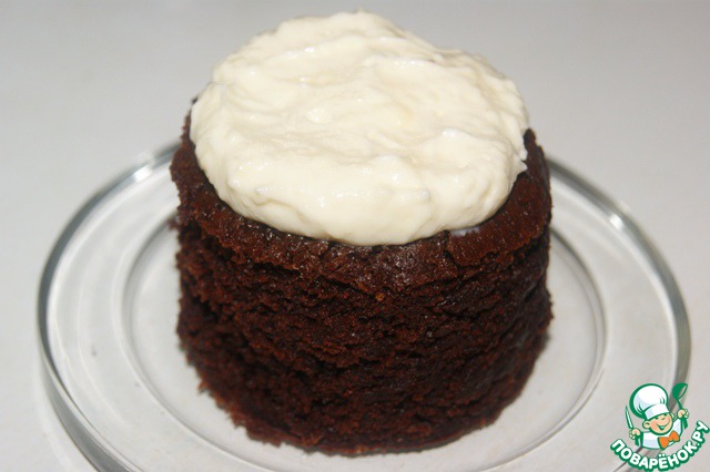 Поместить на верх пирожного одну полную чайную ложку крема и аккуратно распределить слоем 0,5 см.