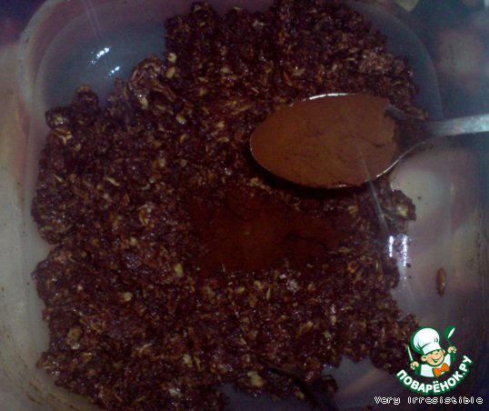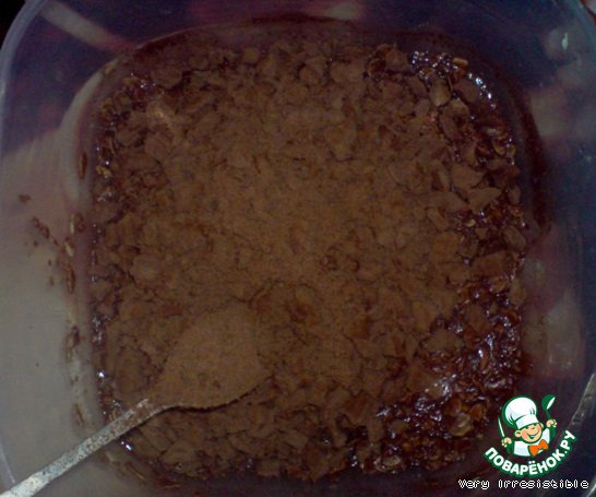 Когда хлопья немного набухнут, добавляем измельченное печенье. Лучше сделать помельче, но не в муку.