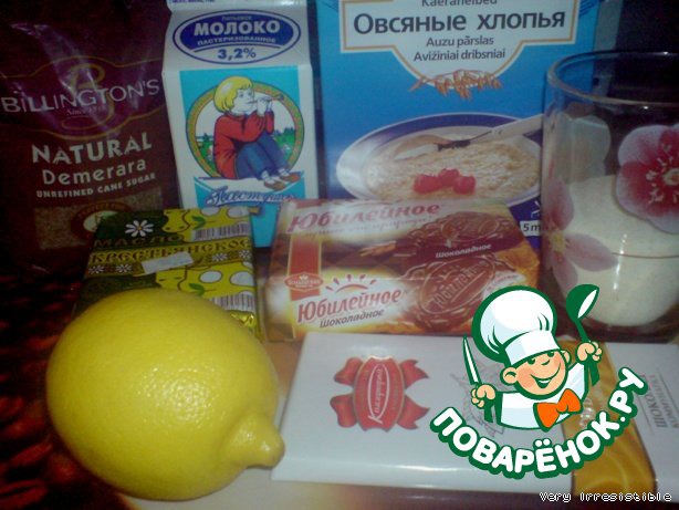 Вот исходные продукты. Сахар я использую коричневый, шоколад - горький.