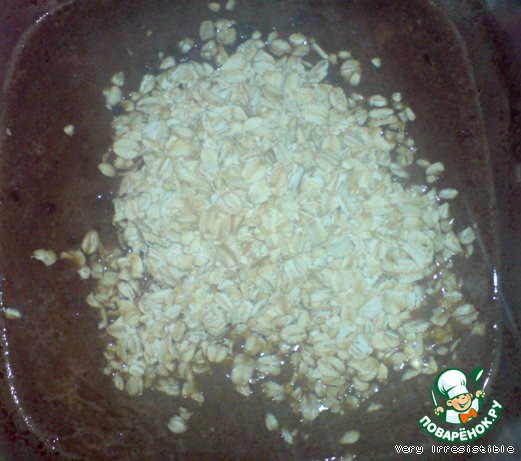 Добавляем сливочное масло, тщательно перемешиваем и засыпаем овсяные хлопья.