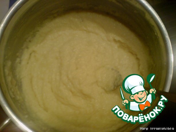 Высыпаем манку с сахаром в теплое молоко и, постоянно помешивая, варим густую кашу.