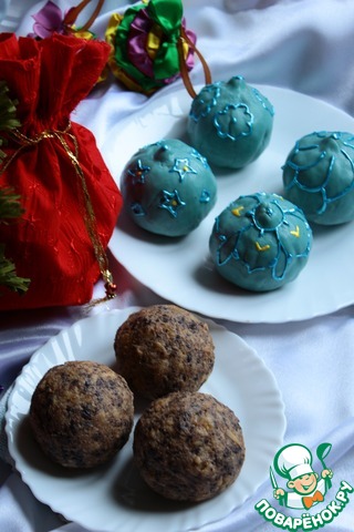 Из полученной смеси формируем шарики. У меня получилось 7шт. Ставим в холодильник, а тем временем приступаем к приготовлению мастики.