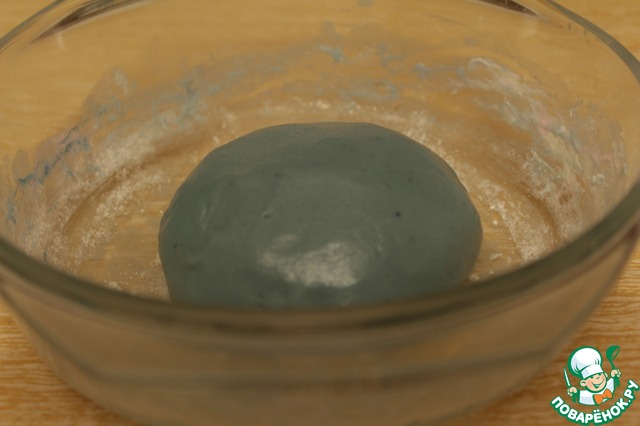 Идея у меня была не все шарики покрывать, потому полученной массы мне было достаточно на 4 шарика. Большую плоскую тарелку я накрыла пищевой пленкой и пальцами формировала круглые пласты, мастика легко поддается. В середину кладем наш шарик, поднимаем пленку с 4-х уголков, переворачиваем, убираем пленку и продолжаем выравнивать мастику на нашем шарике. Примечание: мне пришлось делать очень тонкие пласты. Чтобы покрыть все шарики достаточно будет ингредиенты для мастики взять в тройном объеме и при этом не раскатывать пласты тонко. Особенно, если пользуетесь мастикой впервые, то будет сложно сделать без изъянов, которых мне не получилось избежать.
