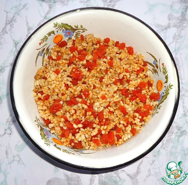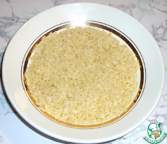 Рис отварить в большом количестве воды до готовности, даже немного переварить, но чтобы рис не слипался, варить 20-25 минут. С риса хорошо слить воду.
