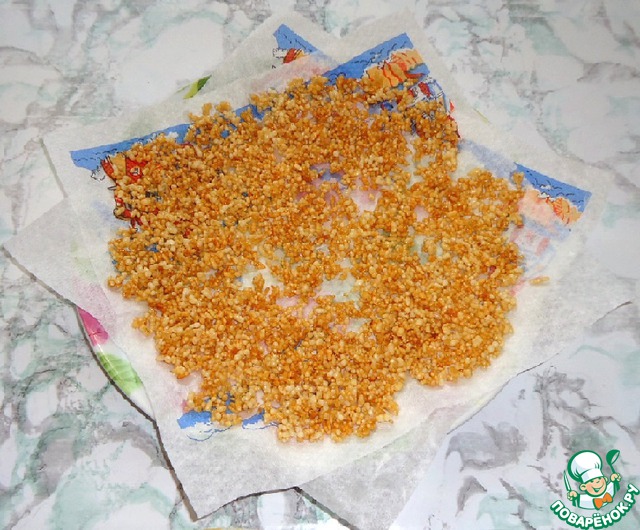 Далее рис выложить на противень, поставить в духовку, нагретую до 100-110 градусов, не менее чем на час до полного высыхания риса.