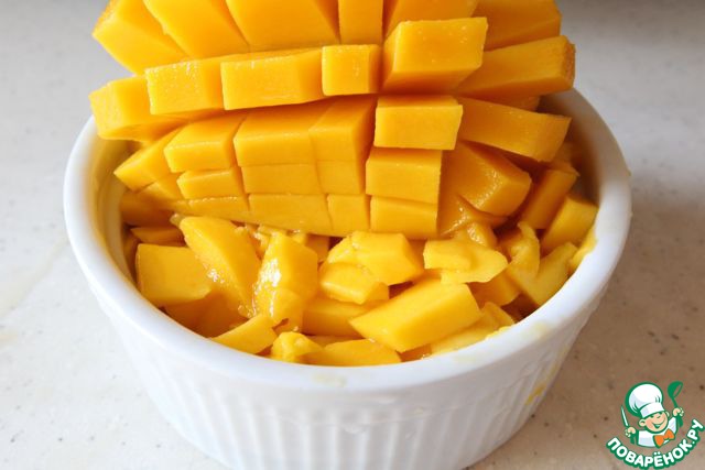 Добавьте кубики манго и варите на среднем огне еще 2-3 минуты. Затем накройте крышкой и дайте полностью остыть.