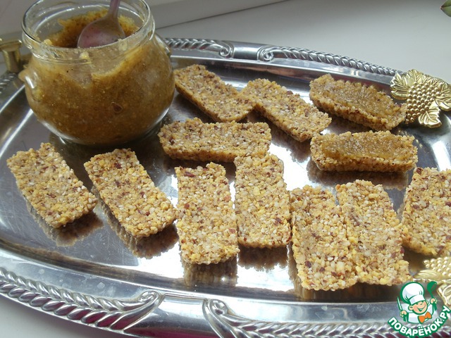 Орехи и хлопья измельчить в блендере, добавить кунжут и мёд, перемешать.