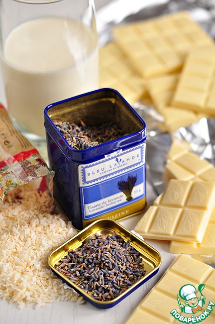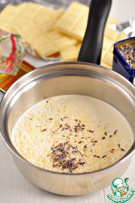 1. Если Вы не любите лаванду, или проблема её найти в Вашем городе, думаю, можно смело её заменить на апельсиновую цедру! Ведь цитрусовые хорошо дружат с кокосом, и с белым шоколадом будет не плохо!) Наверное, цедры с одного апельсина будет достаточно.