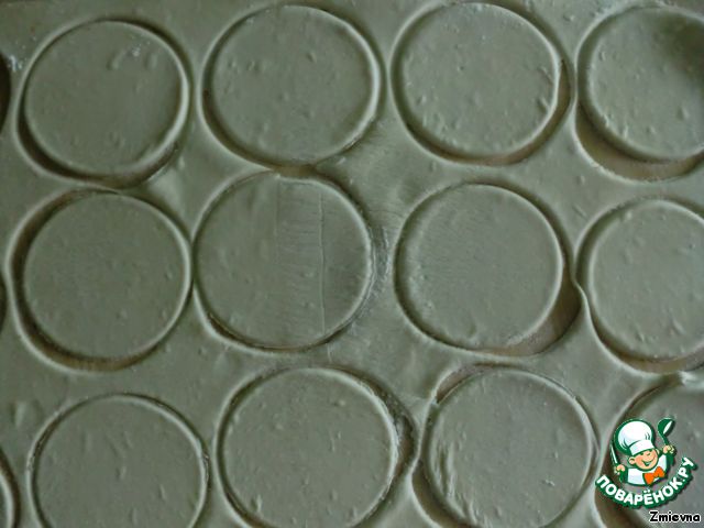 Тесто разморозить, раскатать и выемкой вырезать кружочки.