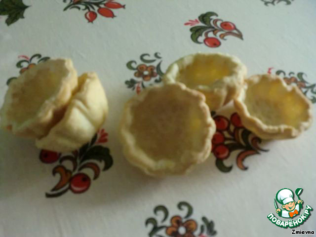 Выпекать корзиночки в разогретой духовке до золотистого цвета, затем вынуть их из формы и остудить.