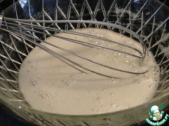 В миске соеденить яичные белки, сахар и соль. Масса будет очень густой и зернистой.