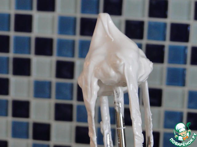 Взбиваем до крепких пиков и пока миска не станет примерно комнатной температуры. Добавить ванилин и взбить до равномерного распределения.