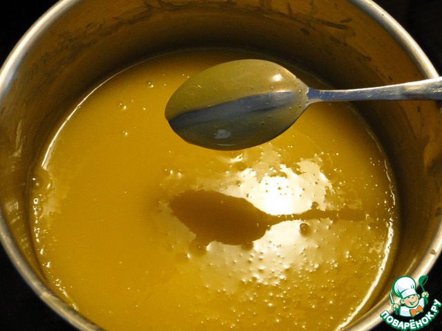 В миске на паровой бане взбейте желтки, сахар, лимонный сок и цедру. Мешайте смесь постоянно, пока он не начнет густеть, это может занять несколько минут. Добавить порезанное на кусочки сливочное масло и продолжать перемешивать, пока масло не растает. Готовность проверить так: когда вы проведете пальцем по ложке, то крем не должен стекать.