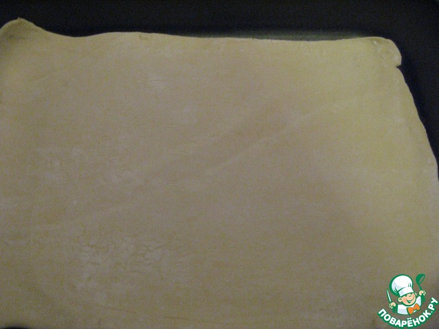 Тесто разморозить. Раскатать по размеру противня или формы. Выложить в форму.