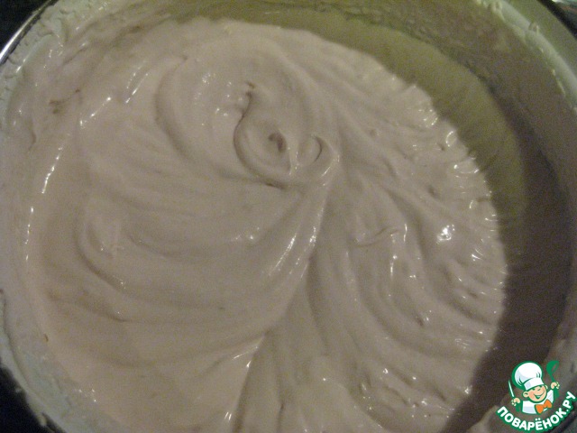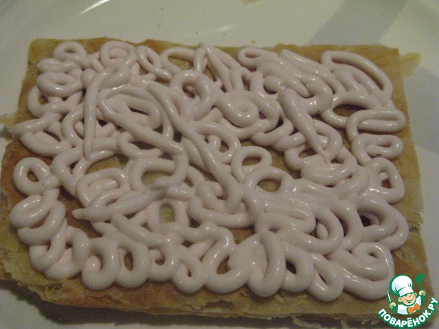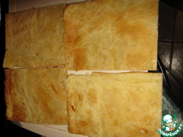 Должно получиться 4 слоя теста и 3 слоя начинки.