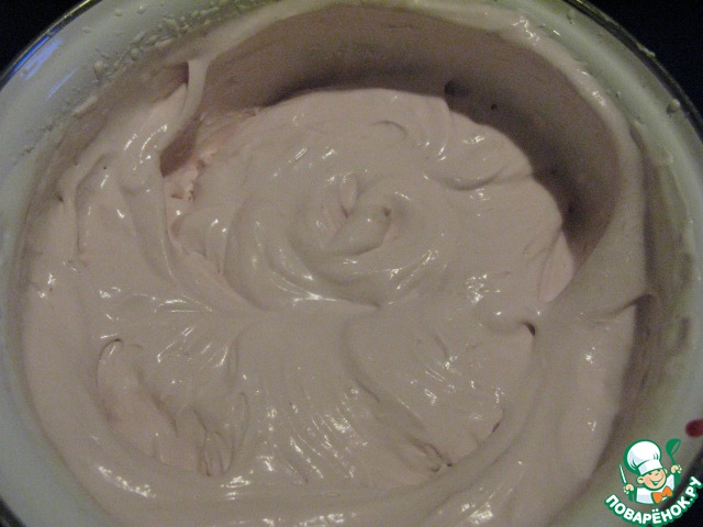 Сливки отдельно очень хорошо взбить. Добавить сок с предварительно размороженной ежевики.