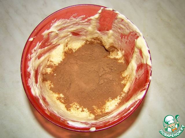 Во вторую часть подмешиваем какао-порошок.