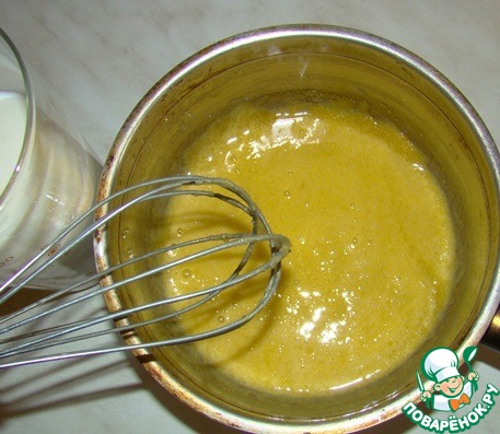 В желтки добавляем 3 стл. тростникового сахара и хорошо перетираем массу.