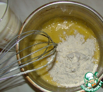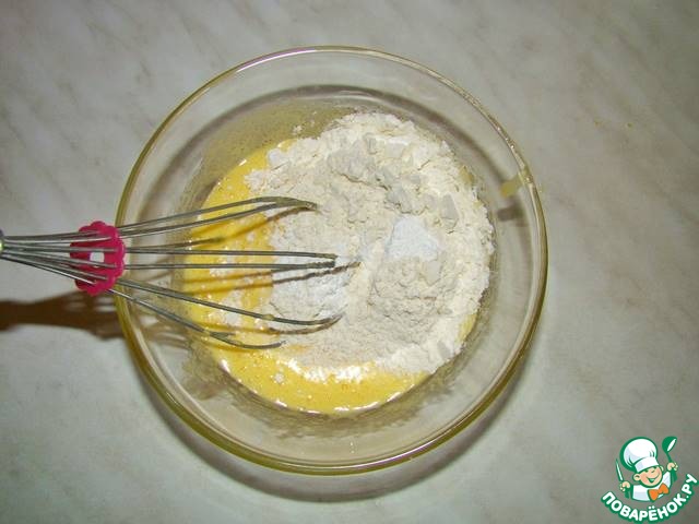 Добавляем 3 ст. л. муки и разрыхлитель. Снова хорошо перемешиваем.