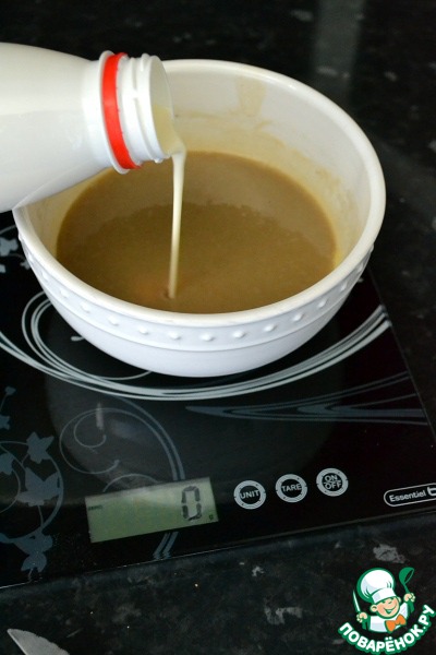 Затем в эту смесь влить оставшиеся 130 мл сливок, размешать.